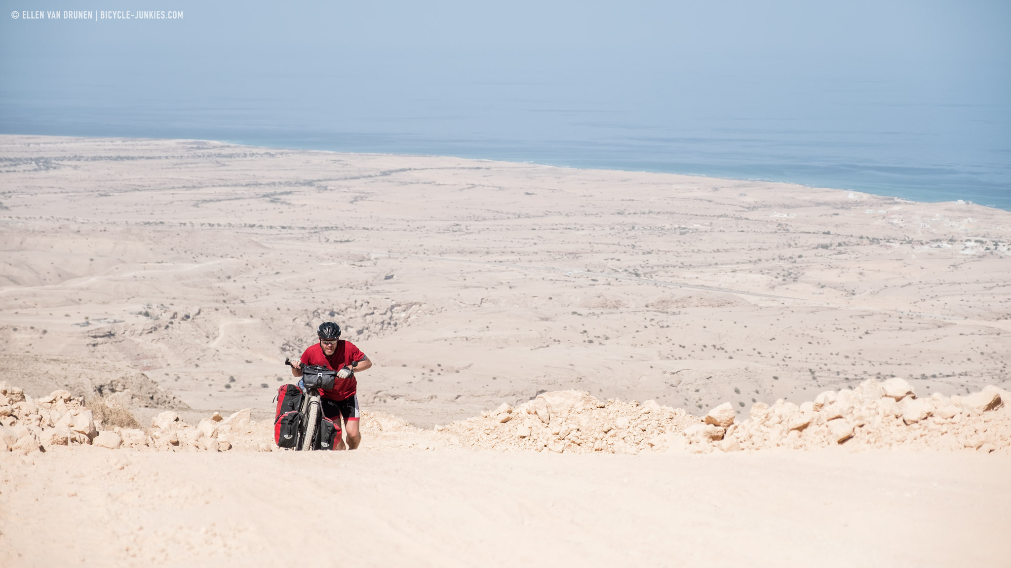 Na de zware rit door de westelijke Hajar bergen, fietsen we door naar Nizwa in twee eenvoudige dagen. We kamperen in de woestijn en checken in Nizwa in bij Hotel Al Diyar, niet te ver van de Souq en het fort.