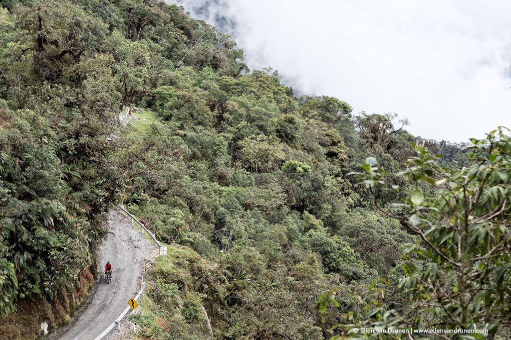 Deze weg met een onheilspellende naam brengt ons van de bergen naar de jungle. Het is heet en vochtig, zweet druppelt in mijn ogen en onze shirts zijn doorweekt en kleine, irritante muggetjes vinden de geur van hard werken erg aantrekkelijk!