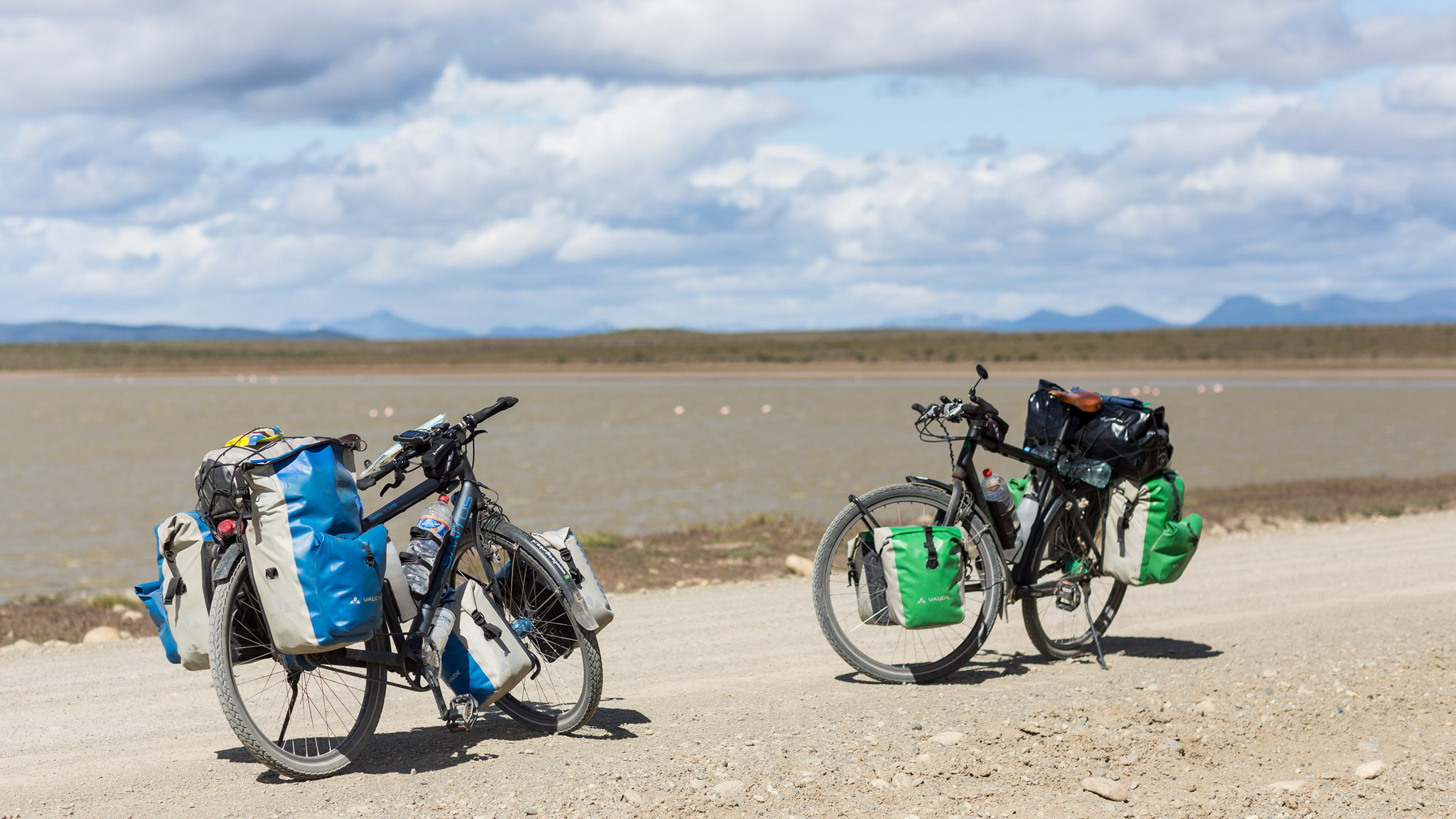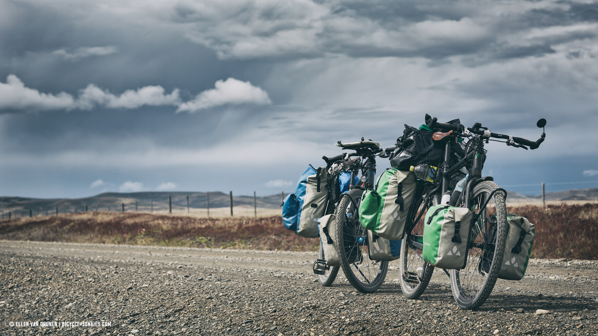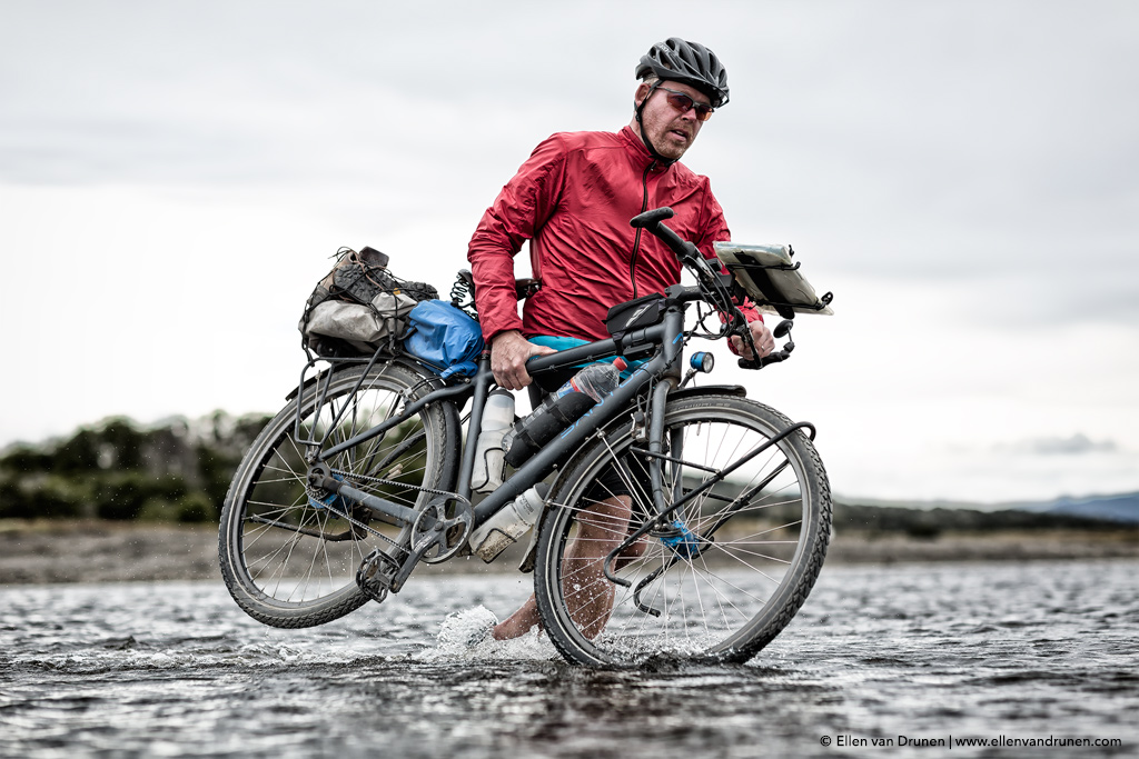 De meeste fietsers kiezen voor de grensovergang bij San Sebastian, maar dit is nog best druk en een beetje saai 😉 We willen deze keer wat meer avontuur en kiezen voor de rivier-grens bij Radman. 70km offroad door niemandsland en dan staan we laat in de middag bij de Argentijnse grenspost; we zijn de eersten die vandaag door de douane gaan! De douaniers helpen ons en duiden de beste plek aan om de rivier te doorwaden. Maar liefst 6x moeten we door het ijskoude water om fiets, tassen en onszelf naar de overkant te brengen. Mijn voeten zijn ijsklompjes geworden! 😉 Aan de overkant trekken we snel weer onze bergschoenen aan en lopen de eerste honderd meter om weer wat bloed daar te krijgen…