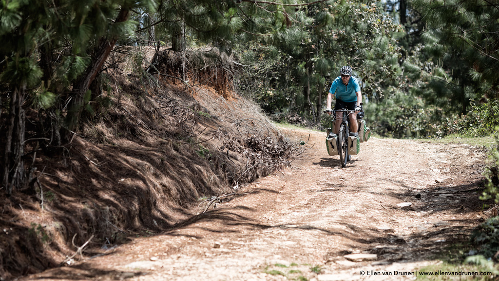 Het is ook best warm hier; we tikken regelmatig de 30 graden aan en dat betekent zweten en stof happen, zeker bergop. Aan het einde van de dag zijn we dan ook steevast twee stoffige, plakkende fietsers die een skinny dip nemen in een van de vele meren. Kamperen kan niet mooier, zo in het wild met alle dage een mooi uitzicht.