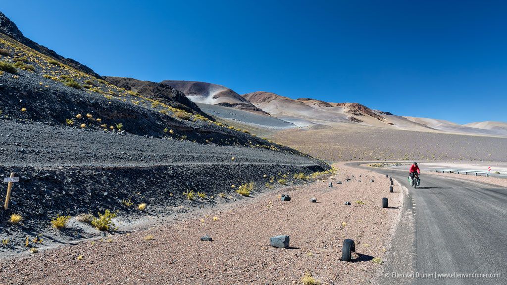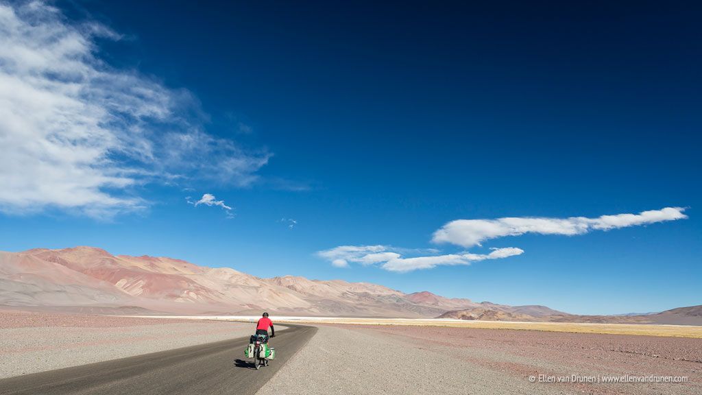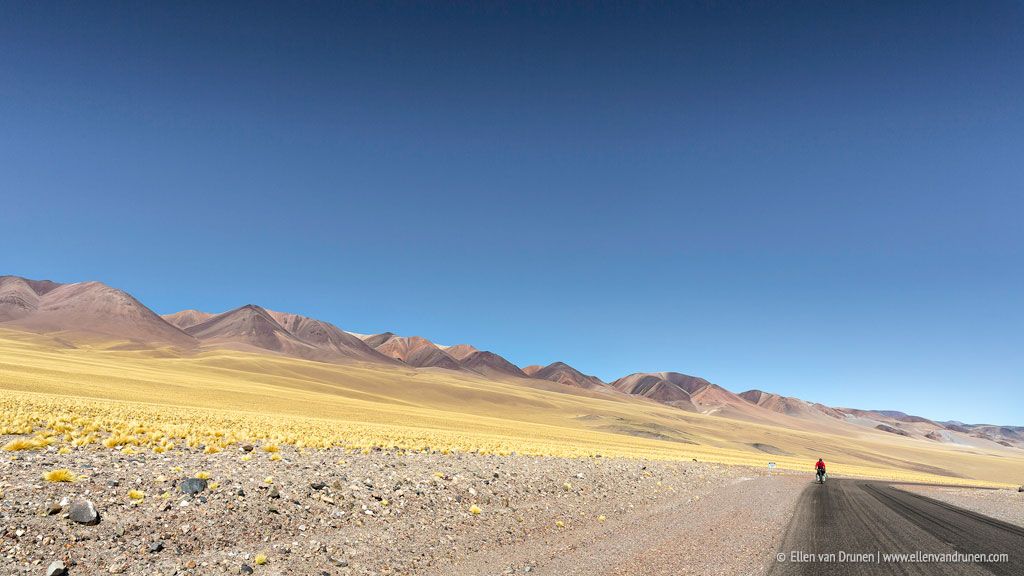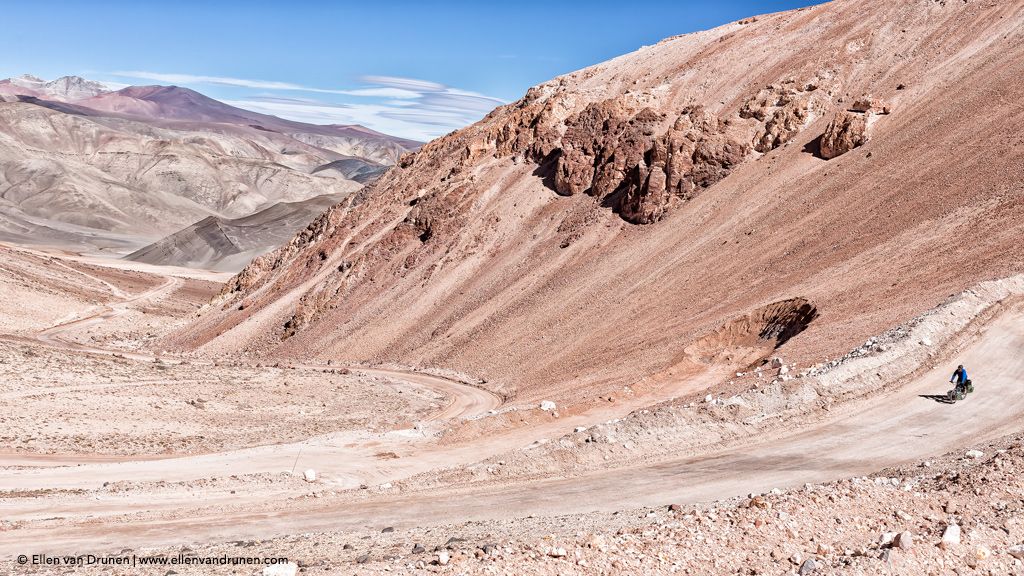 Iets meer dan 450 kilometer ligt er tussen ons en het volgende stadje als we Fiambalá uit fietsen. Onze tassen gevuld met eten en flessen vol met water. Verschillende hoge passen moeten we bedwingen met als hoogste Paso San Francisco op 4774 meter hoogte. Adembenemend; letterlijk.