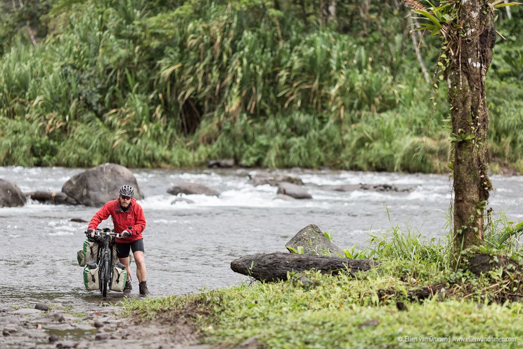 Na een bezoek aarn Corcovado National Park en Manuel Antonio National Park willen we terug de bergen in voor wat verkoeling en zo komt het dat we enorm steile hellingen (20%!!) opfietsen richting Monteverde. Killer climbs noem ik ze! Het is het duwen en zweten meer dan waard, want in Montverde is de temperatuur aangenaam koel. Hier bezoeken we het nevelwoud en zien we ontelbare kolibries and een vrouwelijke Quetzal vogel (de nationale vogel). Het is zo aangenaam dat we er tegenop zien om weer af te dalen… we zoeken een leuke offroad track ten zuiden van Laguna Arenal.